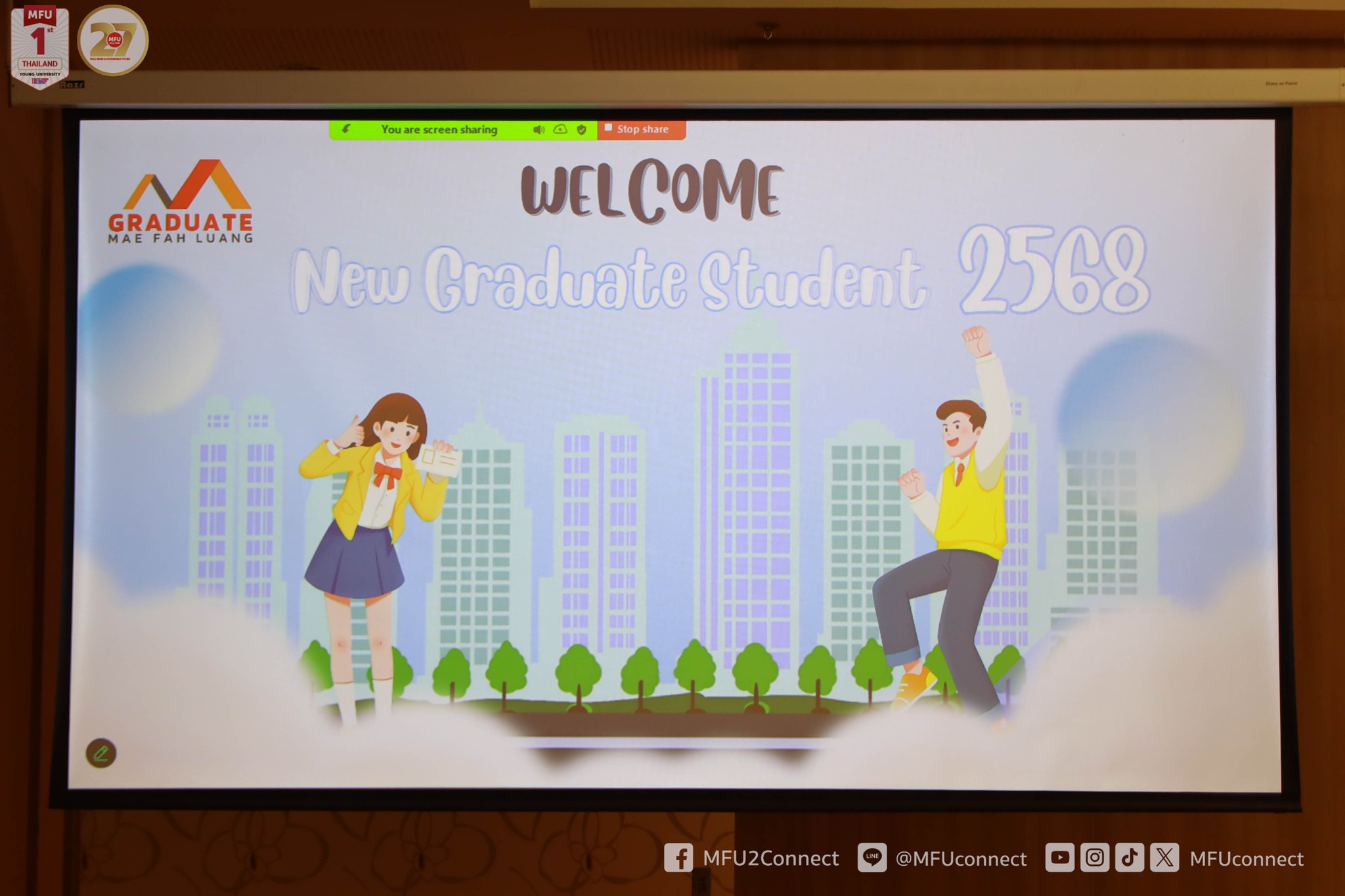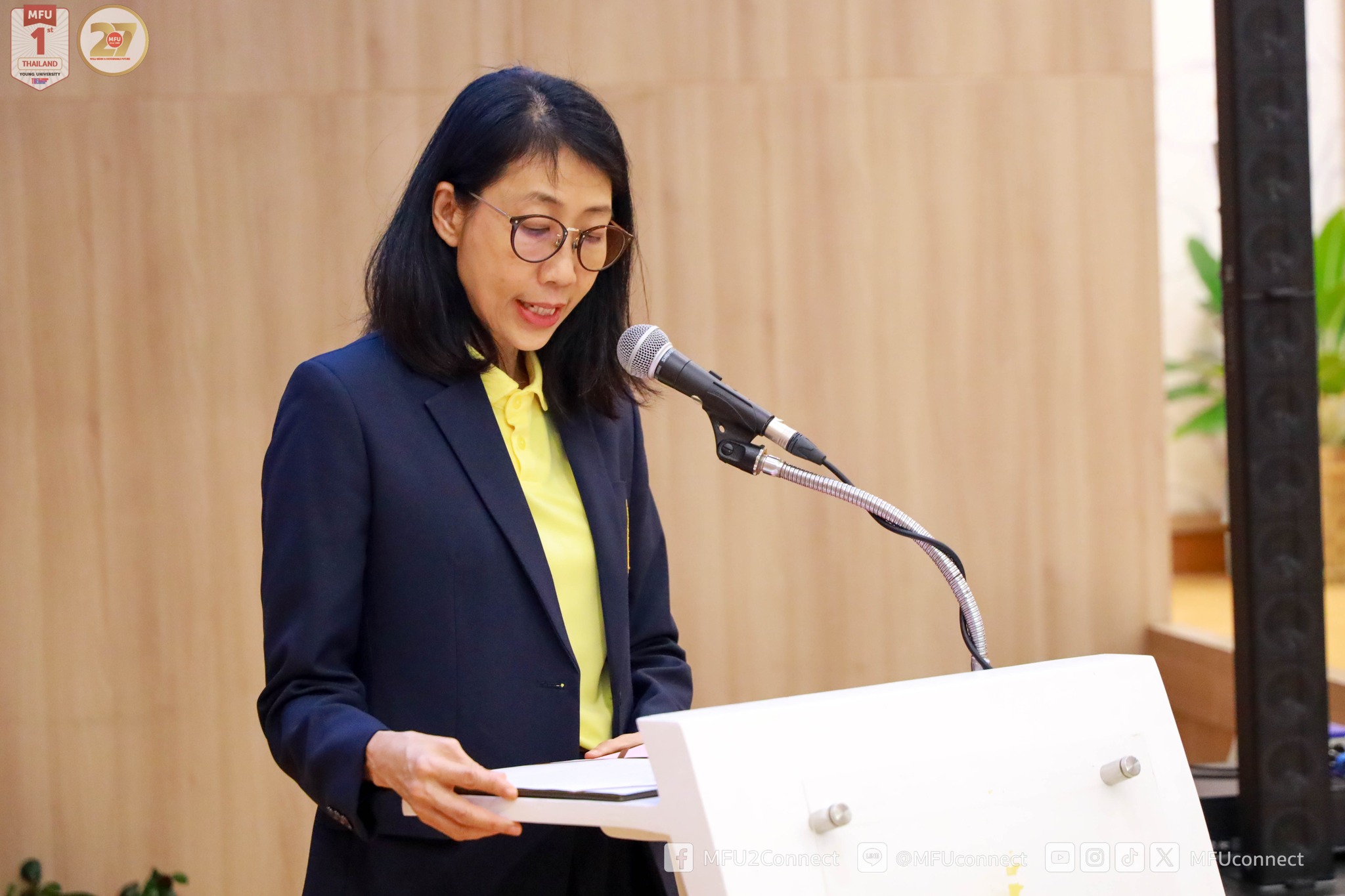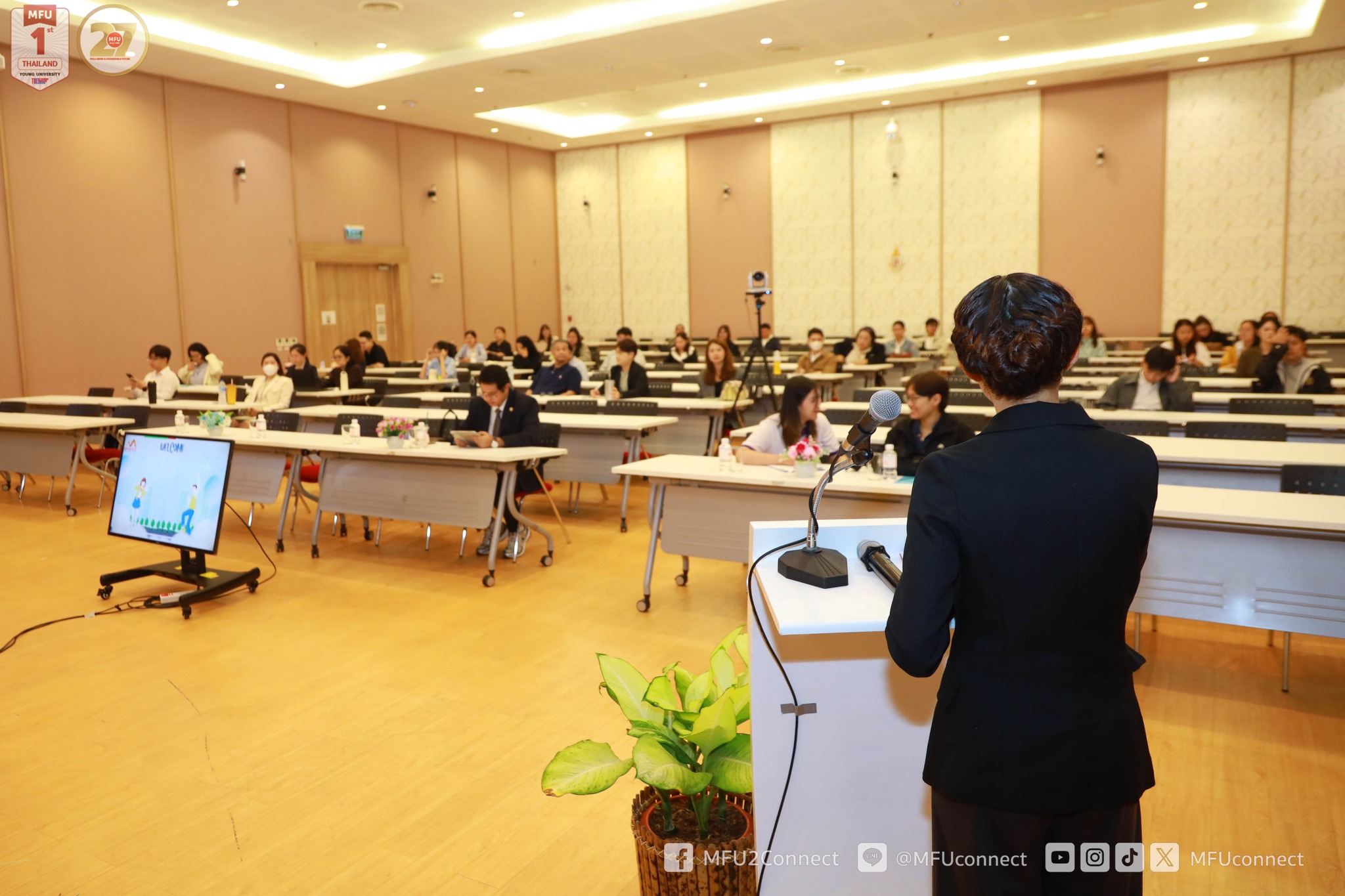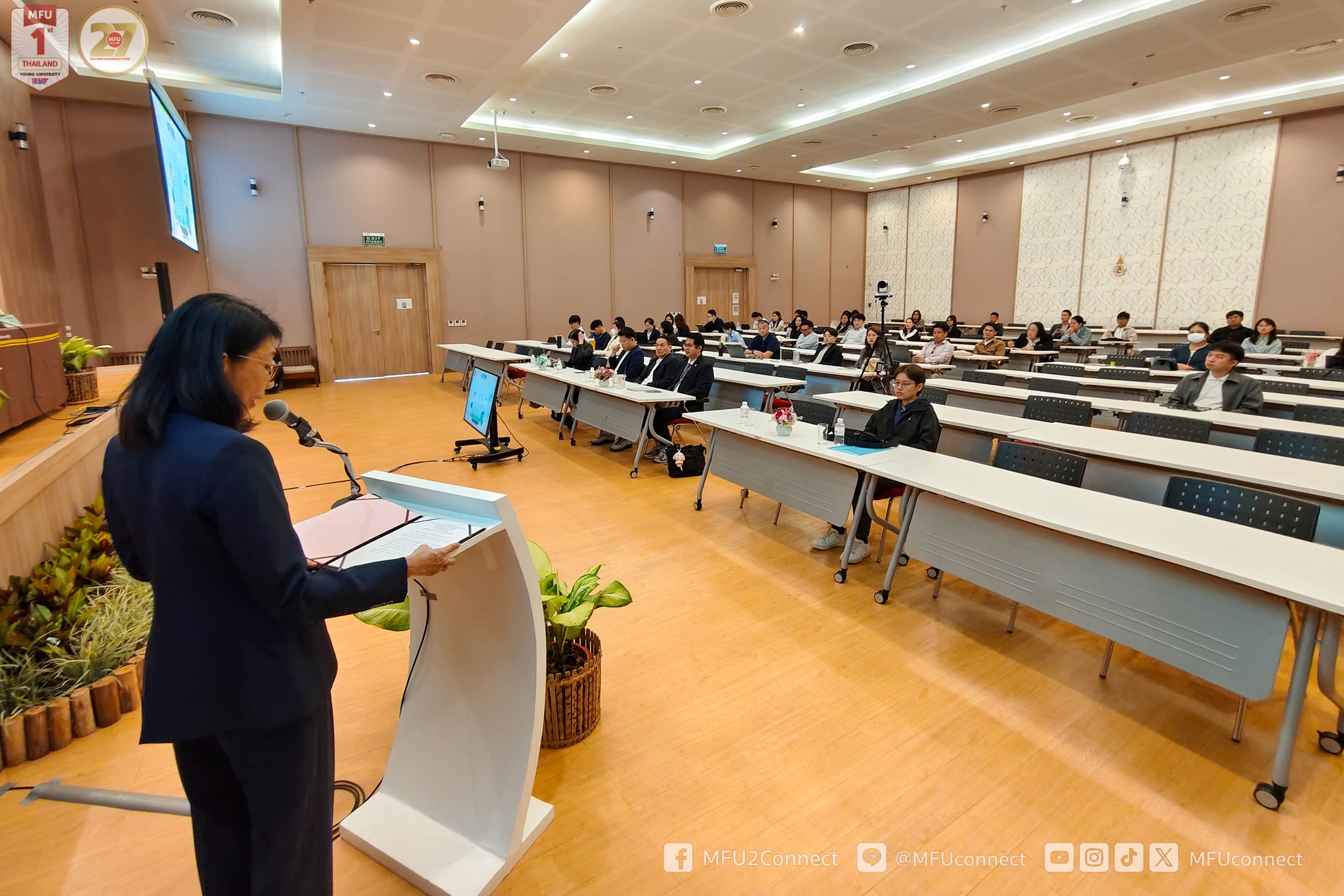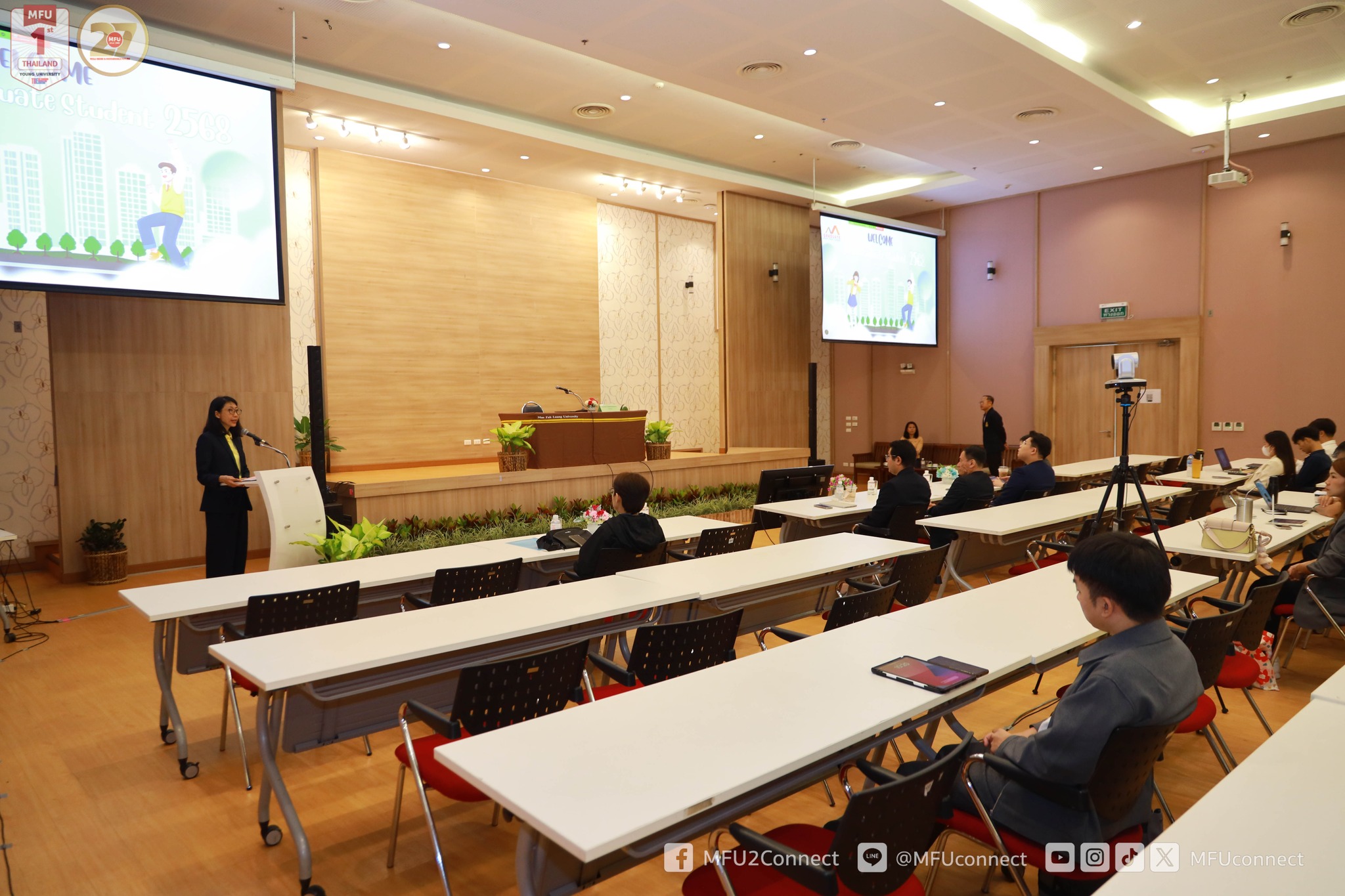 10.00 – 10.20 น. พิธีเปิดการปฐมนิเทศนักศึกษาใหม่ ประจำปีการศึกษา 2568 – กล่าวรายงาน โดย รองศาสตราจารย์ ดร.ดรุณี วัฒนศิริเวช รองอธิการบดี มหาวิทยาลัยแม่ฟ้าหลวง