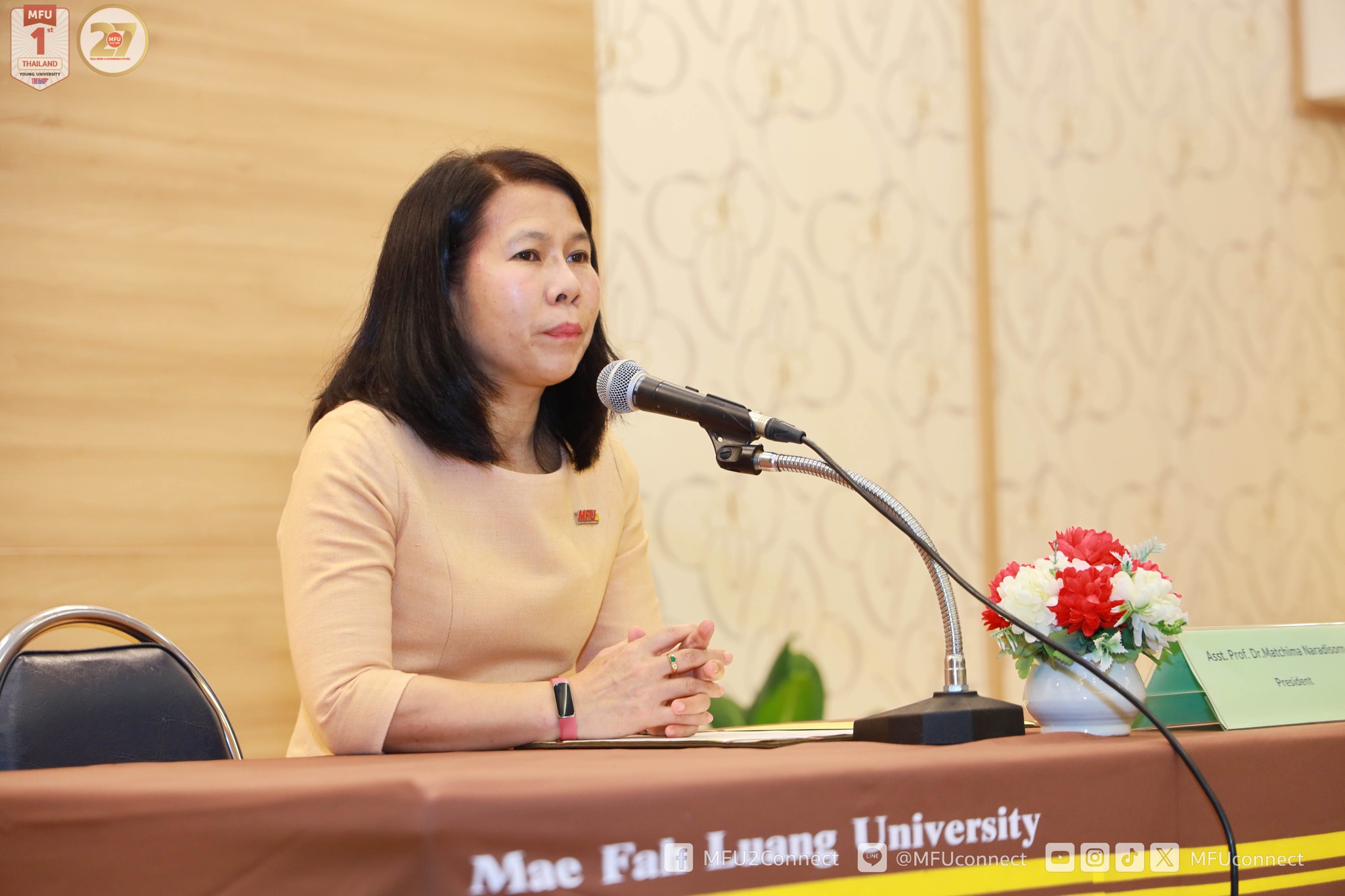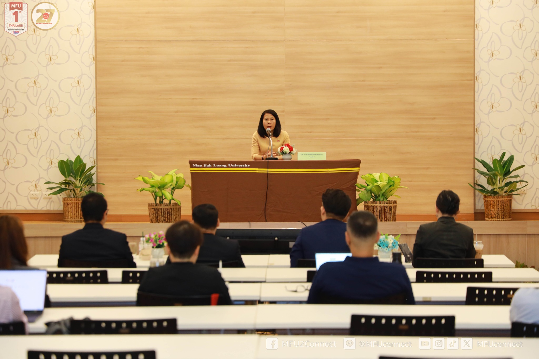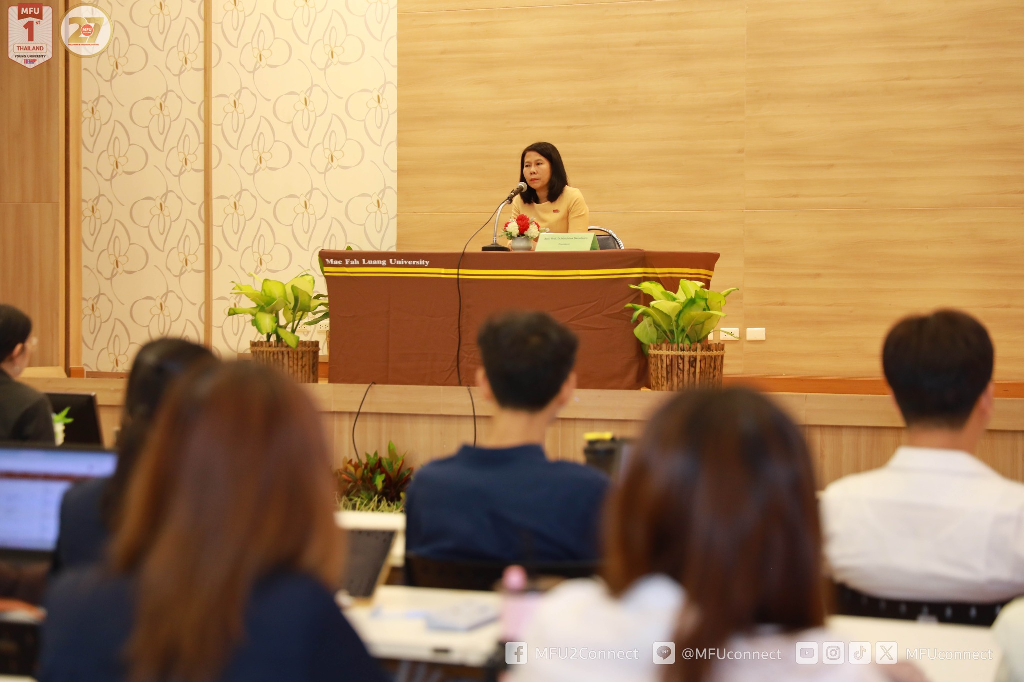 – กล่าวต้อนรับและให้โอวาทนักศึกษาใหม่ ระดับบัณฑิตศึกษา โดย ผู้ช่วยศาสตราจารย์ ดร.มัชฌิมา นราดิศร อธิการบดี มหาวิทยาลัยแม่ฟ้าหลวง