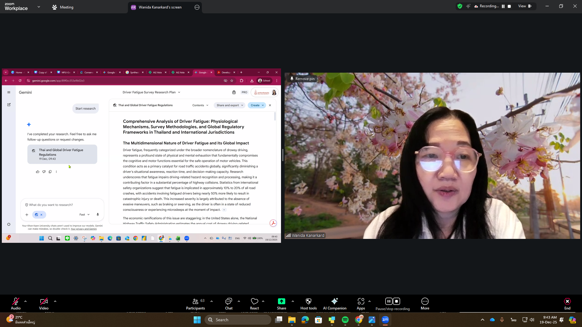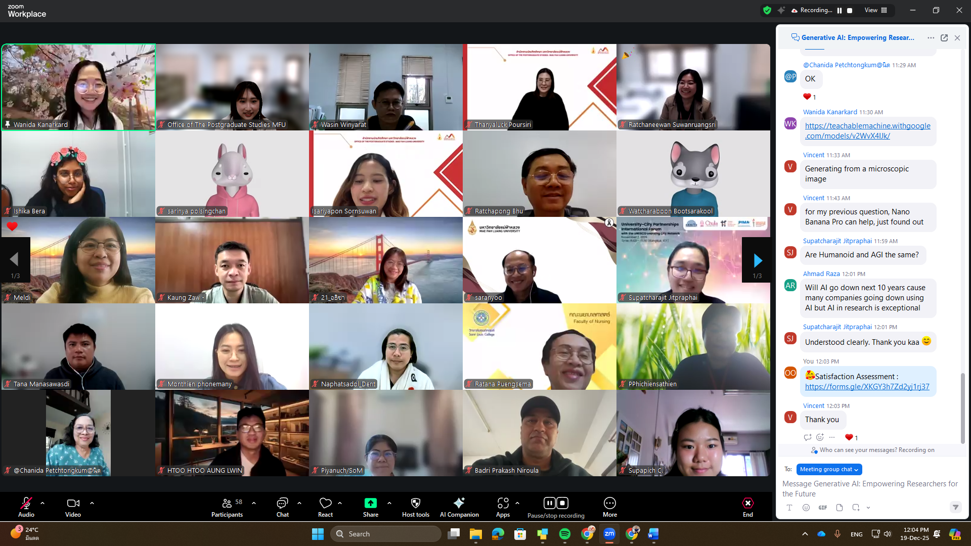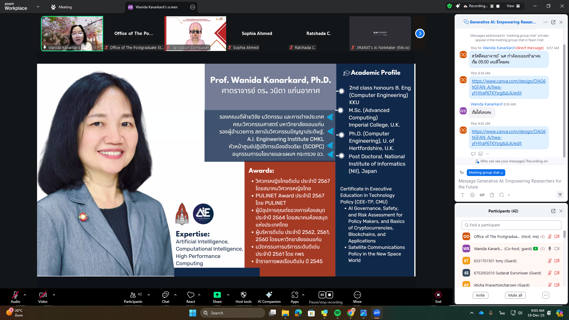 The Office of the Postgraduate Studies organized a training workshop titled “Generative AI: Empowering Researchers for the Future” on Friday, December 19, 2025, via Zoom Meeting. The session featured Prof. Dr. Wanida Kanarkard, Vice Dean for Research, Innovation, and International Affairs at the Faculty of Engineering, Khon Kaen University, as the speaker.